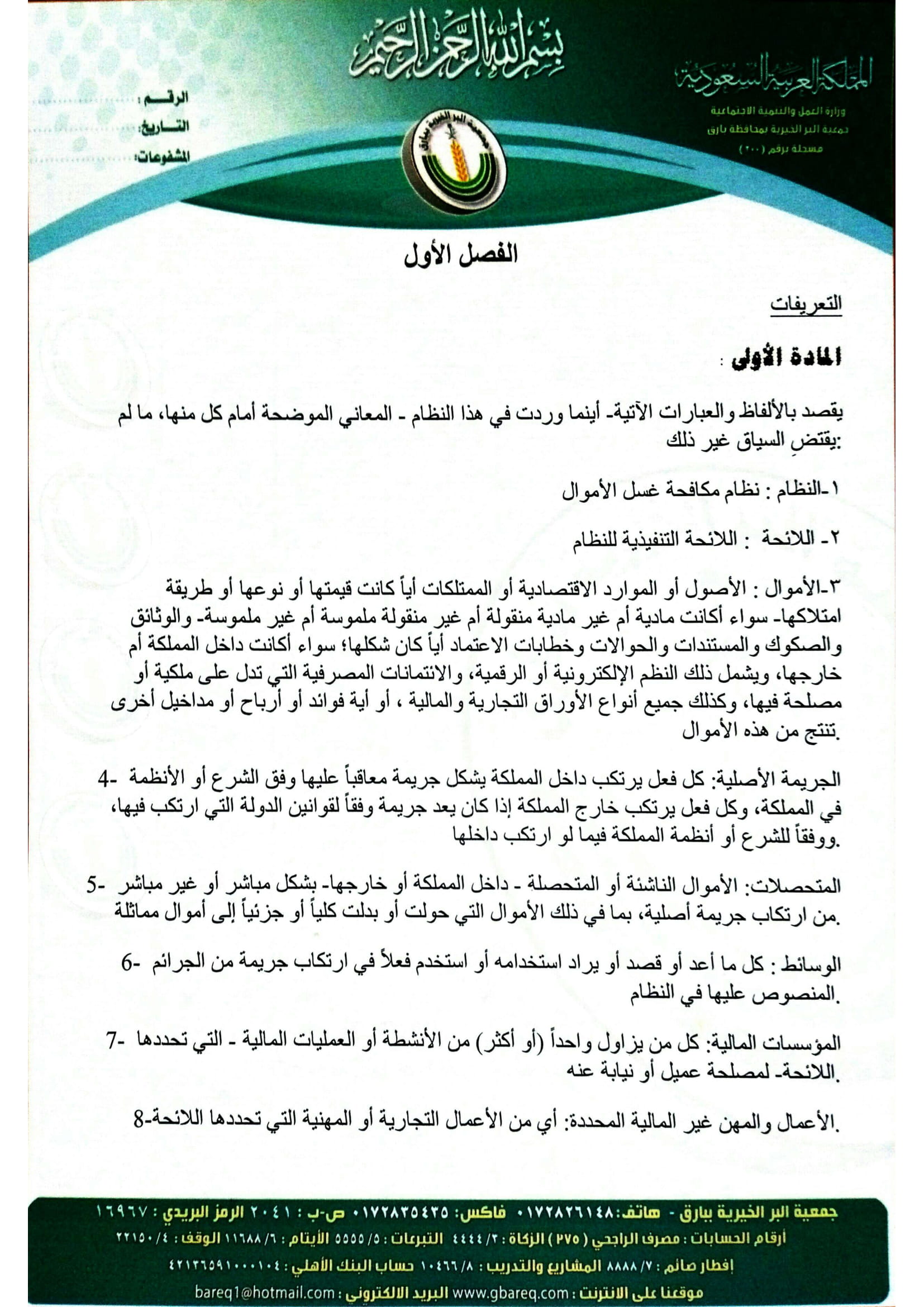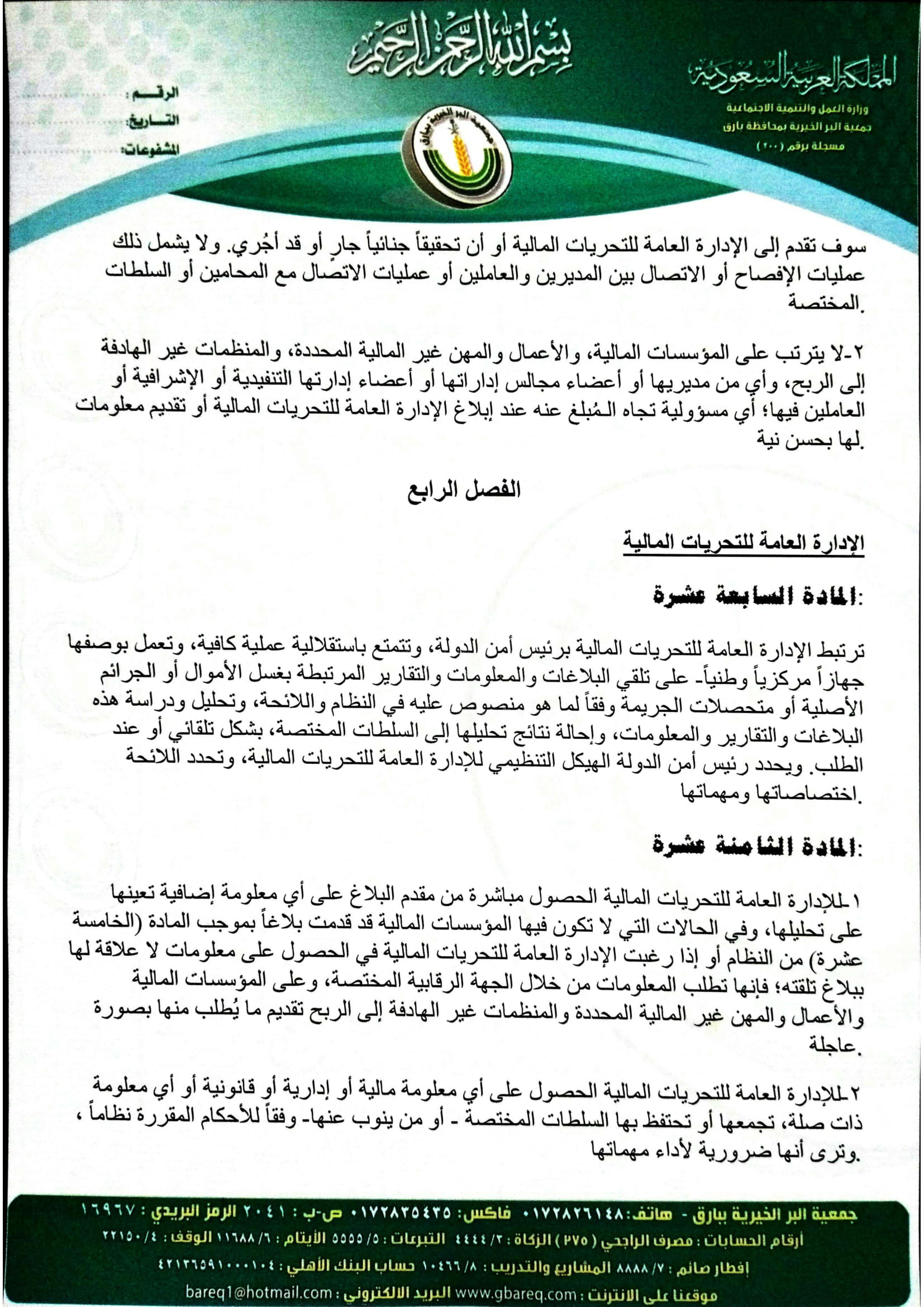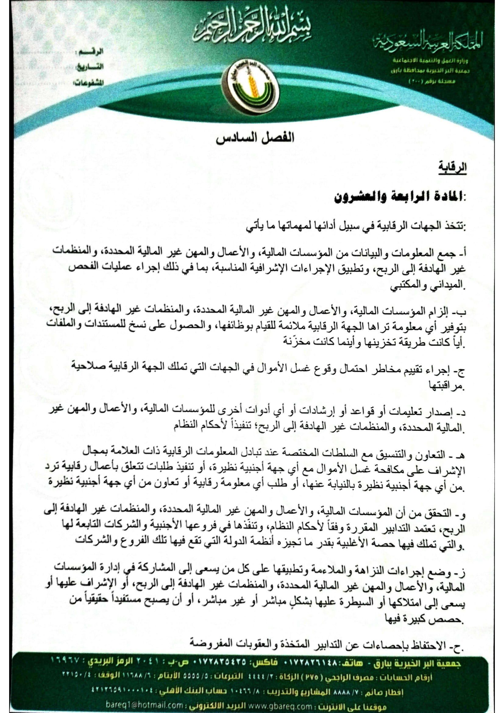 لائحة جمعية البر الخيرية ببارق المعتمدة