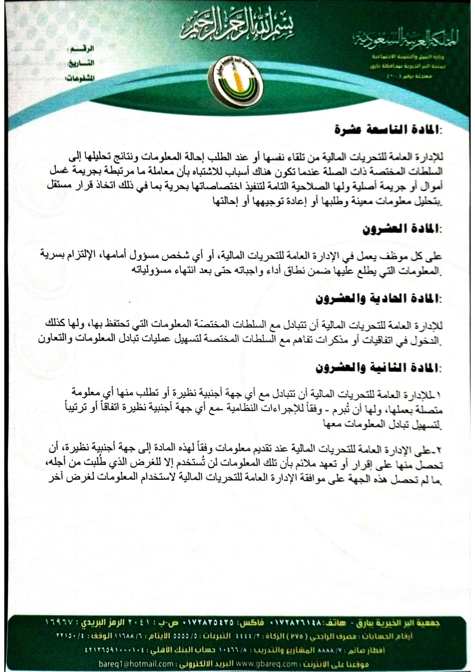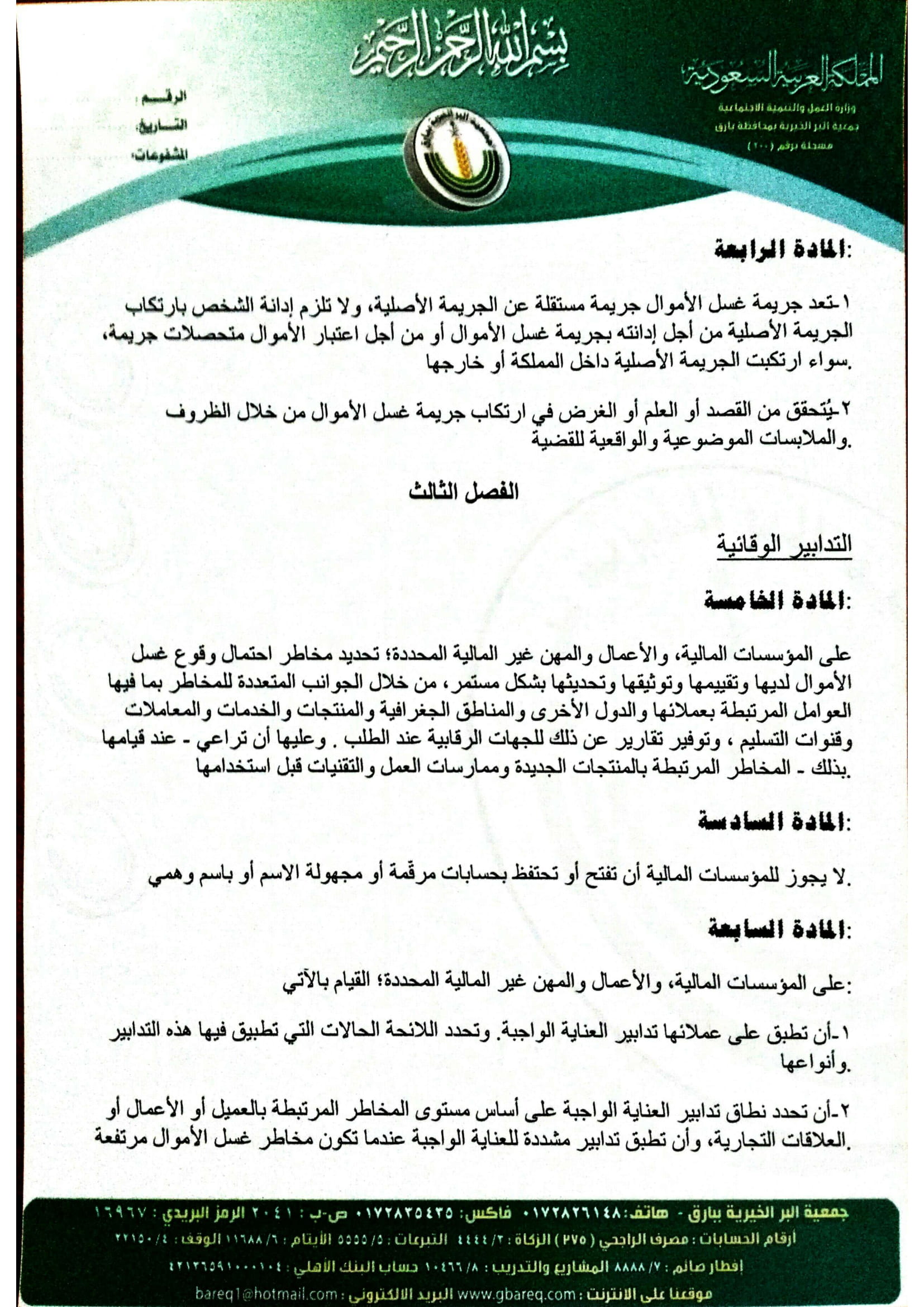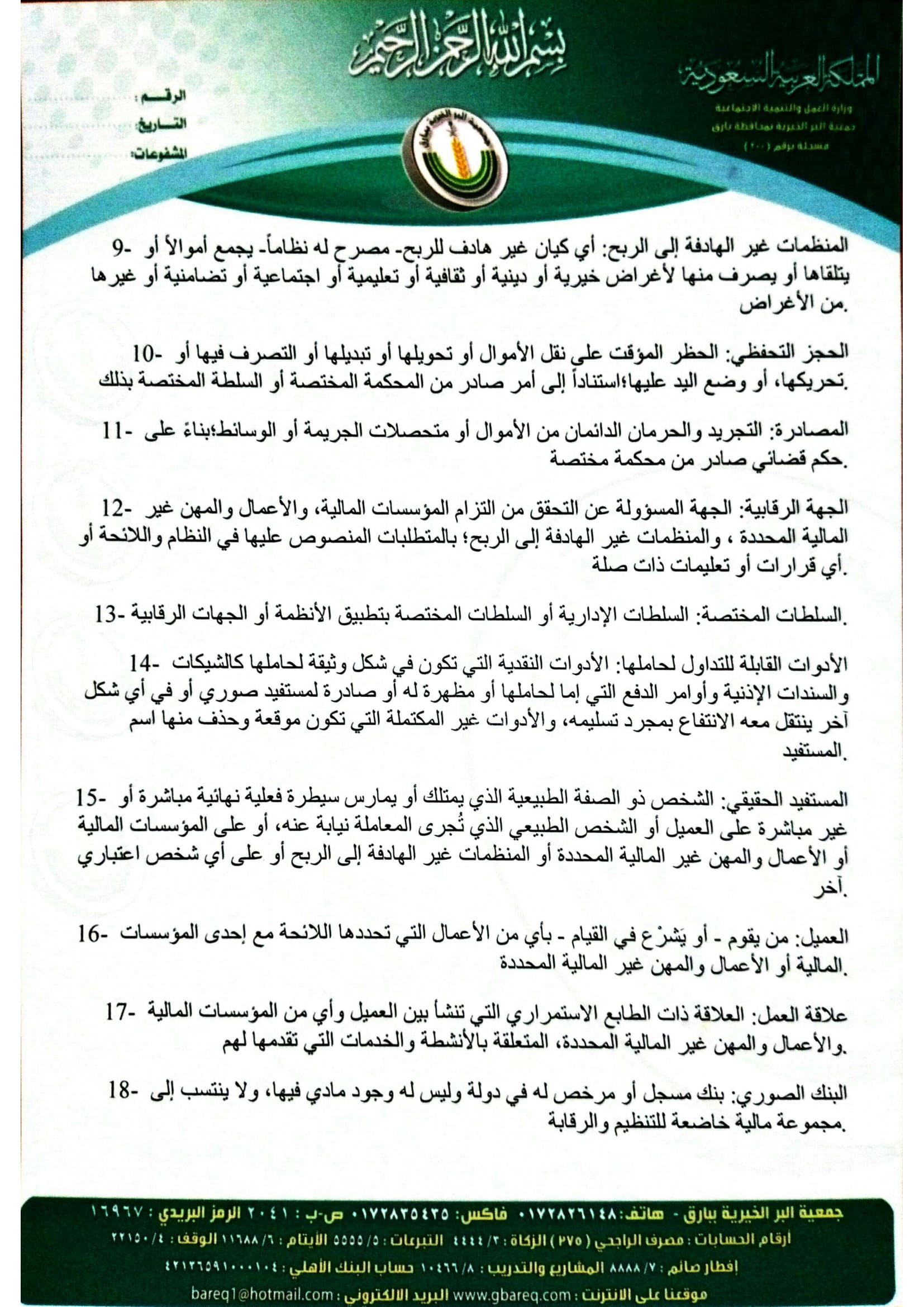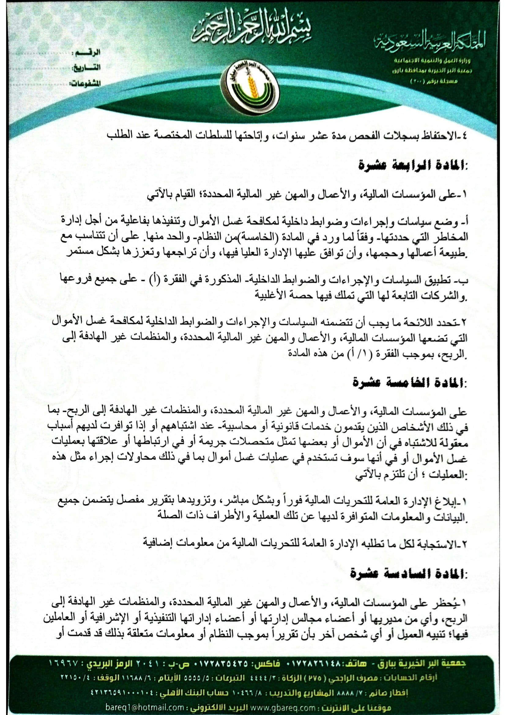 لائحة جمعية البر الخيرية ببارق المعتمدة