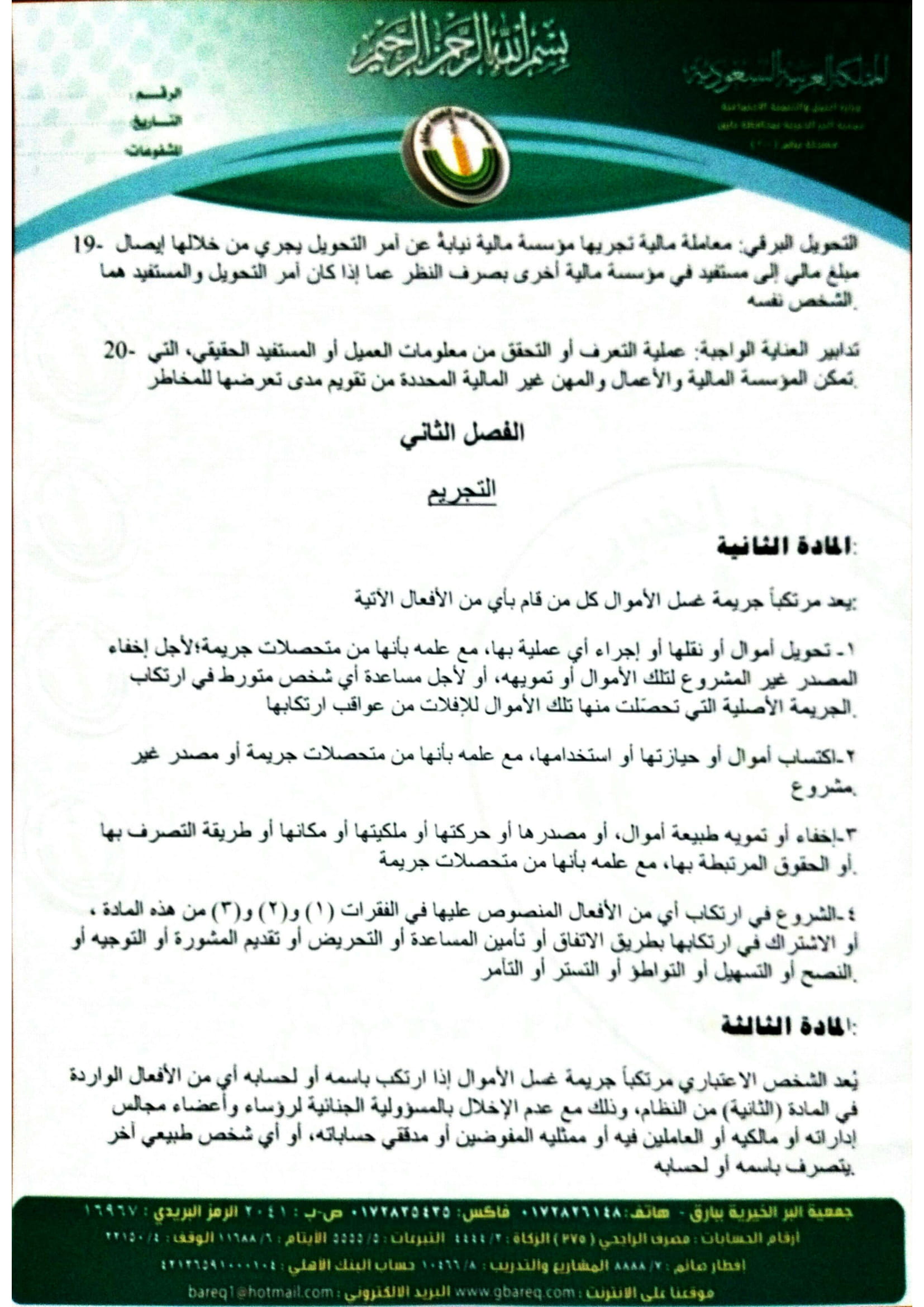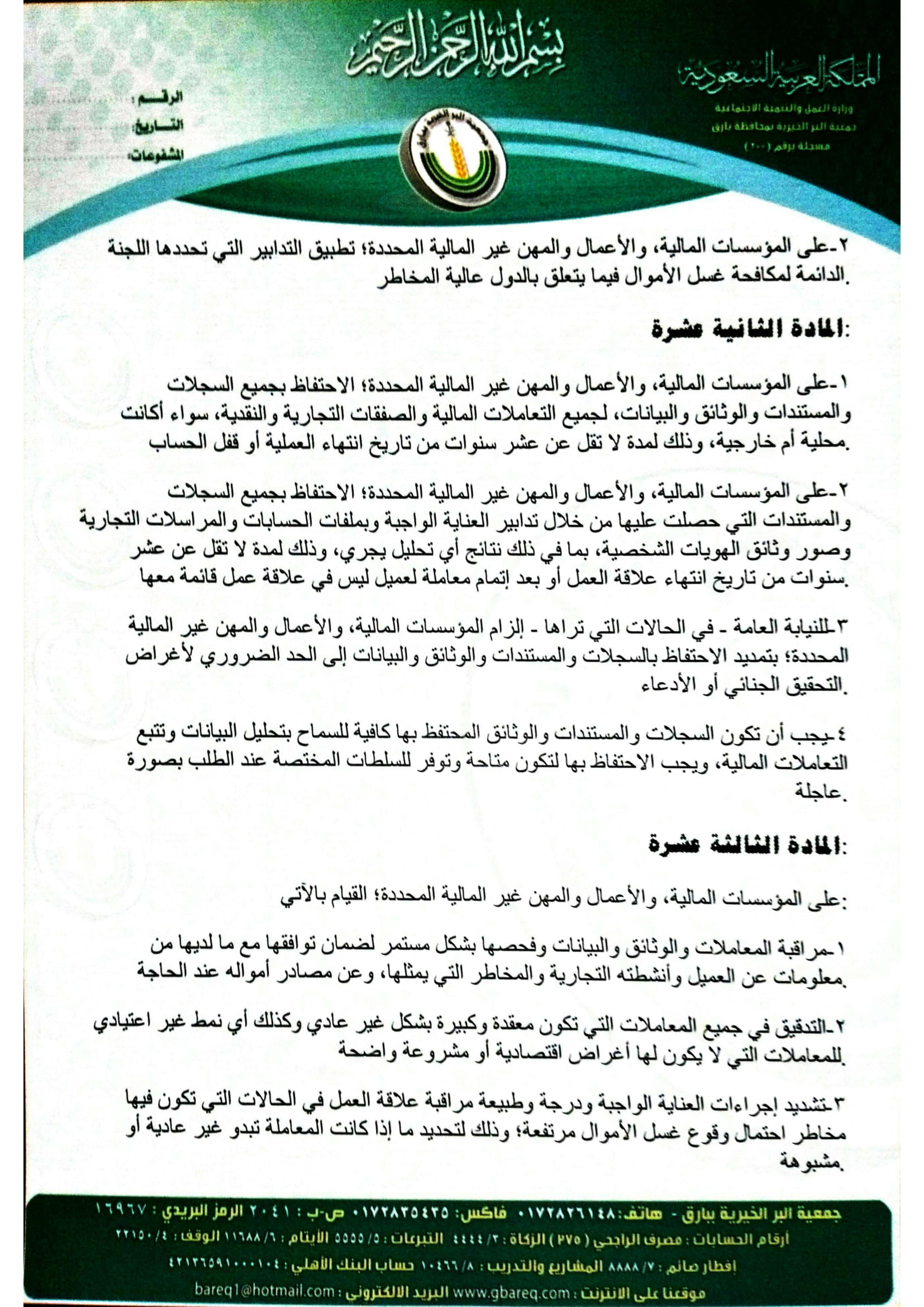 لوائح وأنظمة نظام مكافحة غسل الأموال