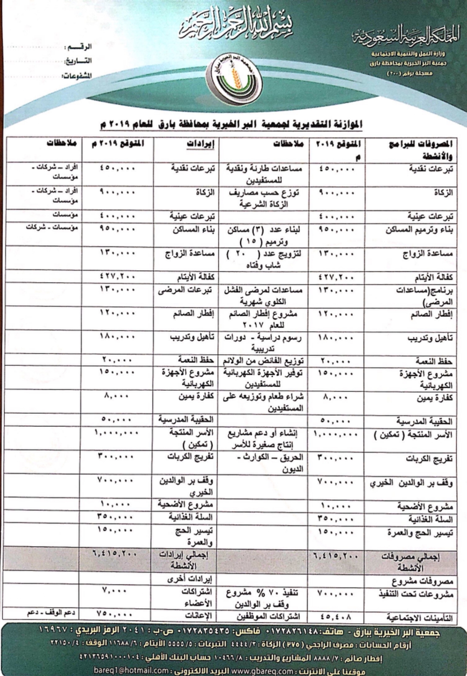 ميزانية الجمعية لعام 2019م