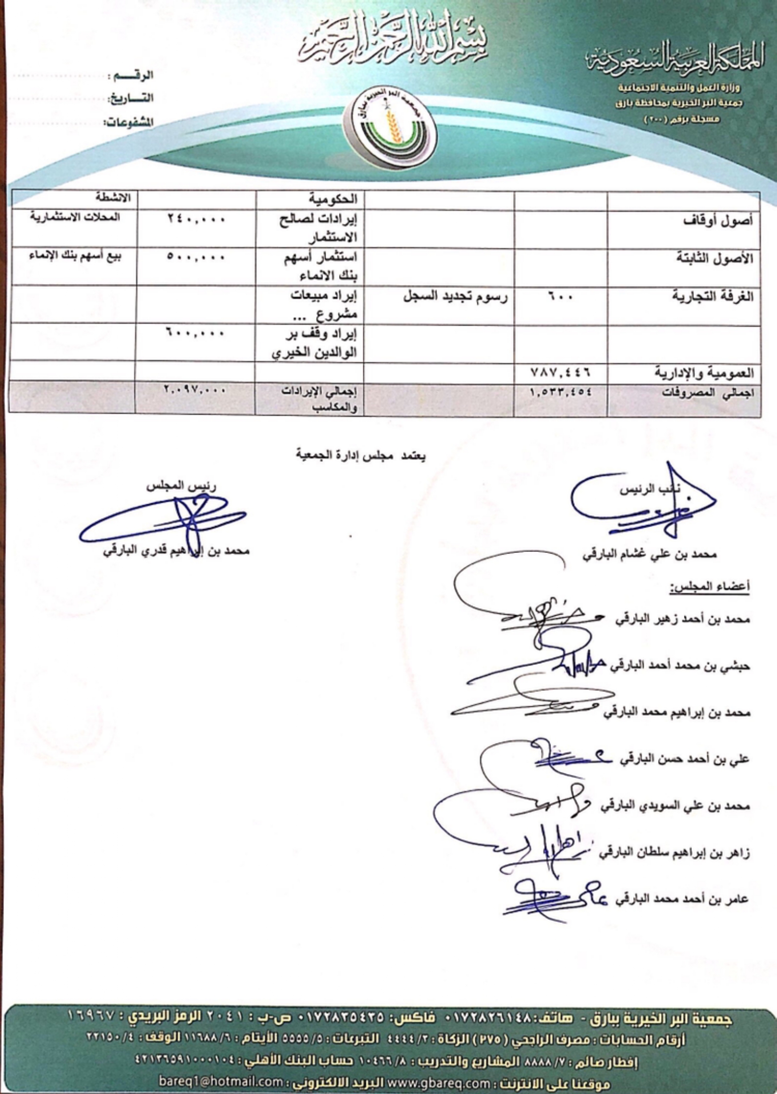القوائم المالية لجمعية البر ببارق لعام 2024م