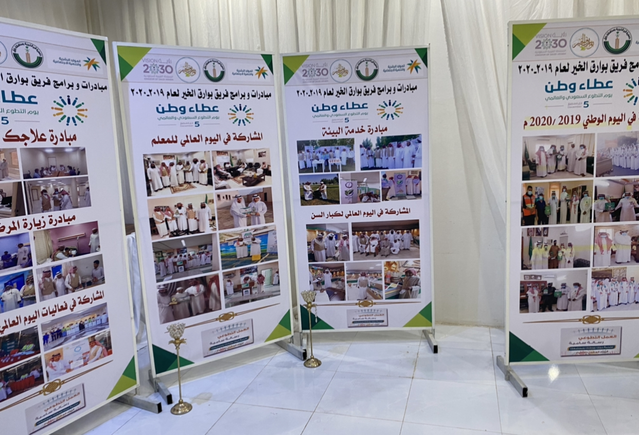 رعا سعادة محافظ بارق الأستاذ مفرح بن زايد البناوي مساء اليوم الأحد 1442/04/21هـ في قاعة چولي بالمحافظة ، الحفل الذي أقامه فريق بوارق الخيـر التطوعي التابع لجمعية البـر الخيـرية بمناسبة يوم التطوع السعودي والعالمي ، وسط تطبيق الإجراءات الإحترازية والتباعد الإجتماعي .
