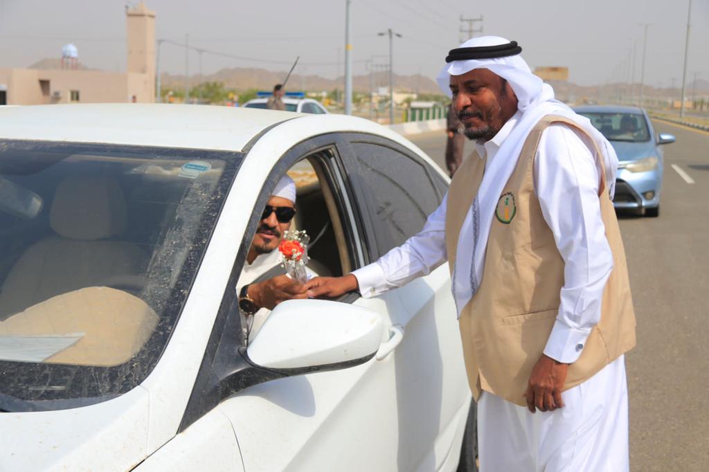 إنفاذاً لتوجيهات أمير منطقة عسير الأمير تركي بن طلال دشن محافظ بارق الأستاذ مفرح بن زايد البناوي ومدراء الإدارات الحكومية والأمنية مبادرة حسن الوفادة تحت شعار #ضيفك_هو_ضيف_عسير_كلها وأستقبل زوار المنطقة بالورود والهدايا وقد شاركت جمعية البر الخيرية بمحافظة بارق ممثله بالمدير التنفيذي الاستاذ احمد البدوي البارقي وفريق بوارق الخير التطوعي
